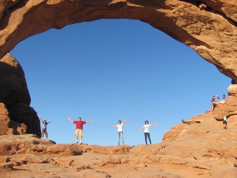 On Friday Ady and I woke up to a room filled with sunshine at 6am. At 7:30 we were able to fall back to sleep for an hour. At 8:30am we all got up and ready. After some breakfast and devotions we left the cabin at 10:30am and began our trek to Utah. We were just planning on going to our hotel, but Utah was surprisingly beautiful, and we ended up taking an excursion into the Arch National Park in Moab, UT – a great decision! We drove about 10 miles up into some stunning scenery. We got to Blanding about 9:30pm and checked into the first hotel of our trip.