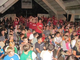 On Monday morning we checked out of our hotel and headed to the church. Hundreds of cars were there and over a thousand children were being dropped off for the Summer Spectacular. We got Natalia checked in and went inside for the opening session. Claudia jumped right in as a volunteer. Ady and I went out for some coffee and began working on our game plan. At 10:30am we met a very nice lady who shoed us a 1-bedroom condo which we decided to rent on a monthly basis while we’re searching for a home to buy. At noon we picked up the girls, stopped in to see my new office, then went to sign the paperwork for the condo. We unloaded most of our luggage and cleaned the van. I then ran to get some pizza for lunch and got some groceries while the girls went swimming in the pool right outside our front door. At 4:30pm we met with our real estate agent and looked at a home. Then we returned our Uhaul trailer and went to our friends’ (the Jones’) house for dinner. We left around 9pm, swung by Walmart, then came home and turned in for the night. It was a productive day.