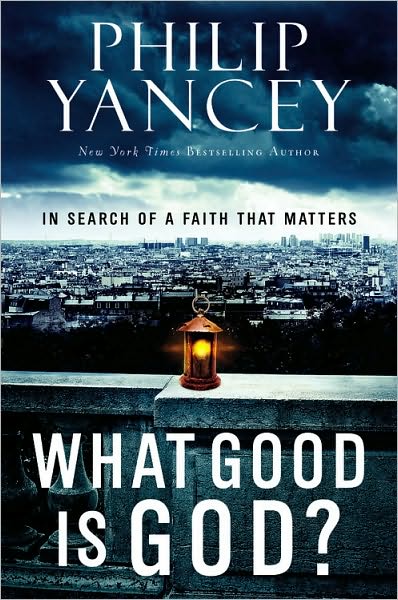 Last night I finished reading Philip Yancey’s book What Good is God? which was given to me as a gift by my friend Kit Farrell. In the book, Yancey recounts several trips he’s made to various places around the world where He’s seen faith in action and hints as to why it matters. Excellent read, and a good book to give seekers.