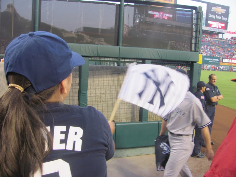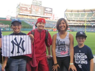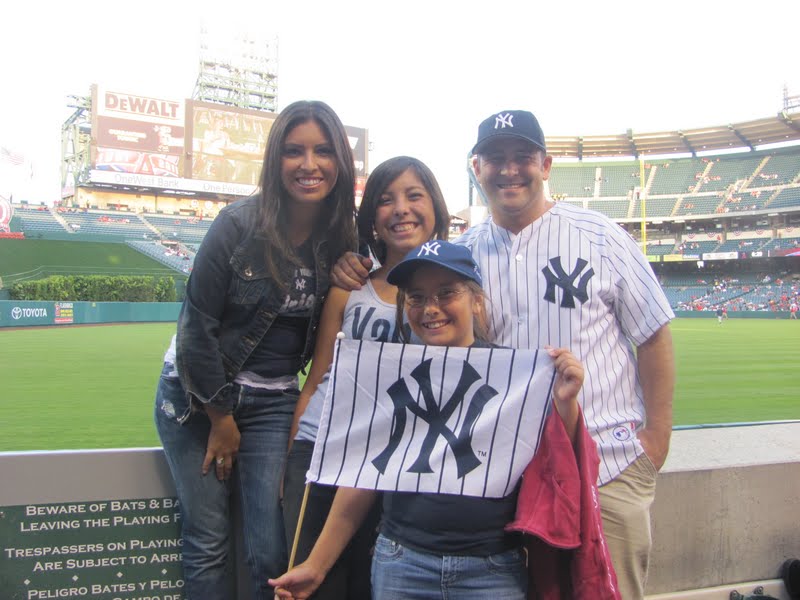 Well, last night, thanks to a friend, we scored tickets to the Yankees vs. Angels game in Anaheim. Don’t worry, we represented Yankees hard core! Unfortunately, the Yanks lost 2-1, but we had a great time with our new friends, the Van Meeterens and enjoyed fireworks after the game. Great family time!