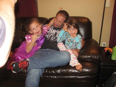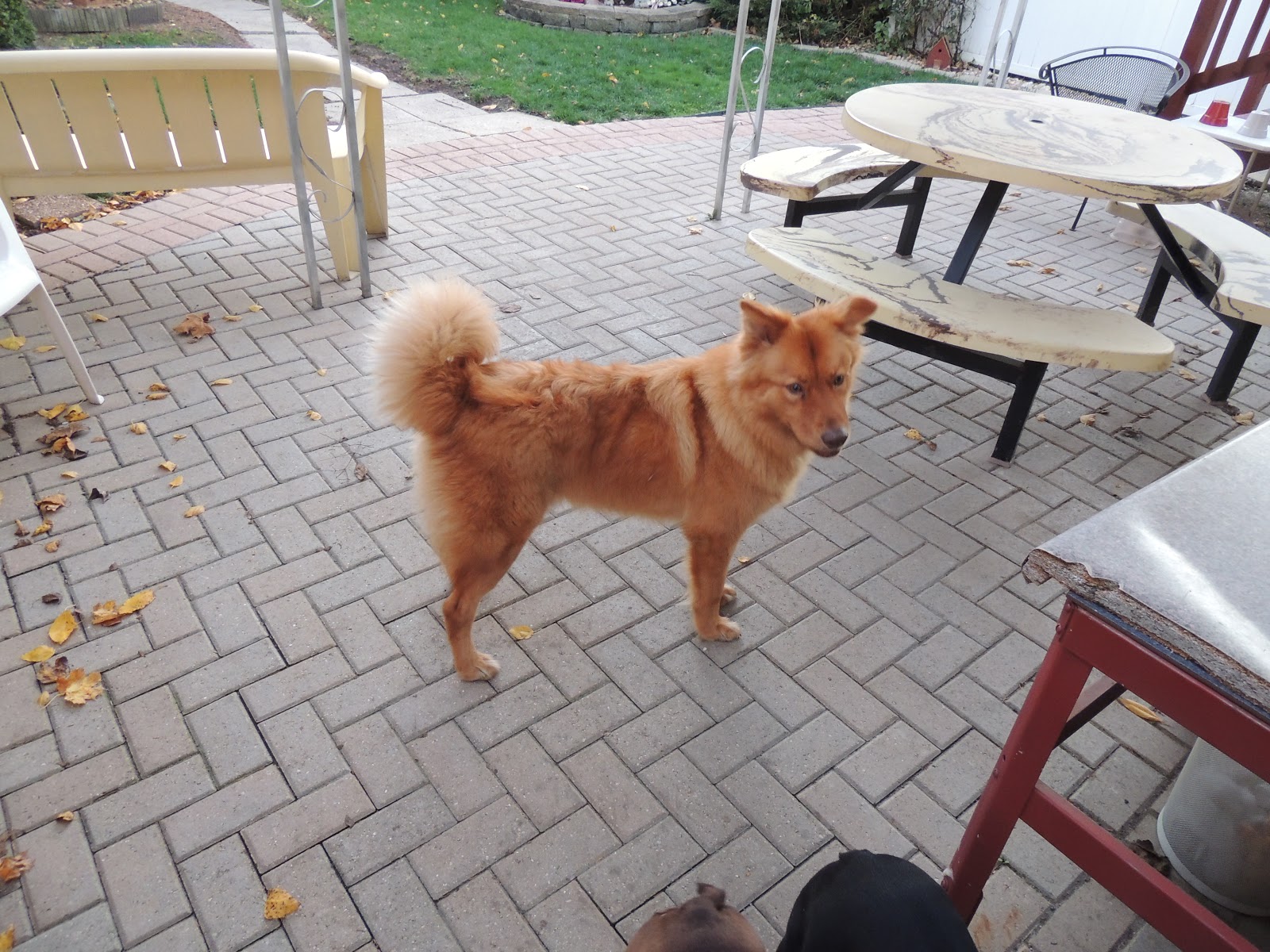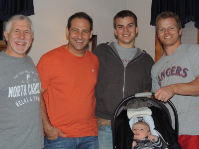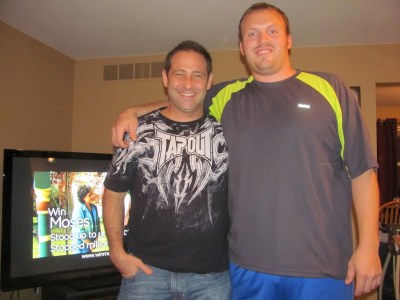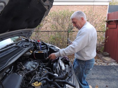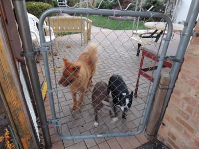 With the impending storm targeting Long Island, I’ve decided to spend a little more time with my parents here in Chicago. This morning we went to their church (Willow Creek) and heard a fantastic message on wisdom by Bill Hybles. After church we had lunch then came home and dad and I worked on the van to try and permanently fix the radiator hose issue we had patched up in Arizona. (When I say Dad and I worked on the van, I mean Dad did the work and I handed him tools. lol!) I then went for a walk with Mom and the dogs (below is a pic of the dog Mom got Dad as a surprise). Afterward we ruined the exercise and I bought my parents their first 5 Guys burgers. They enjoyed them.