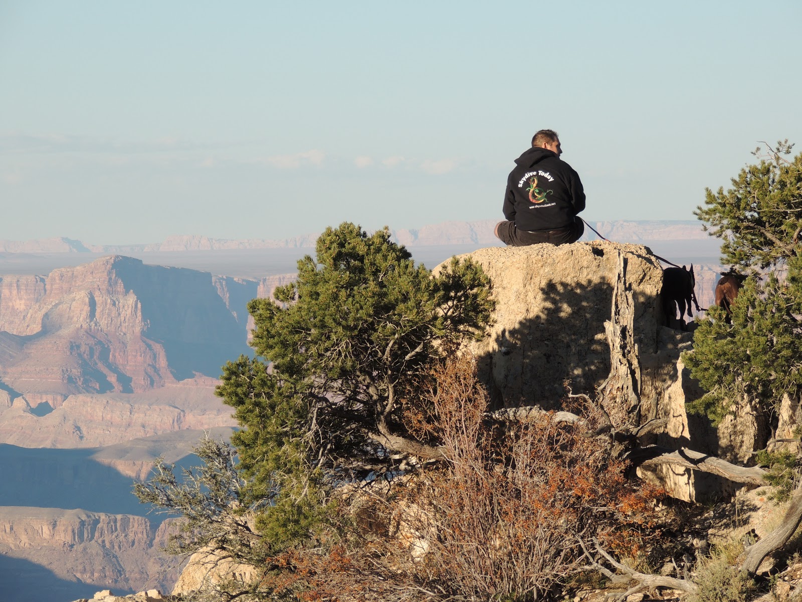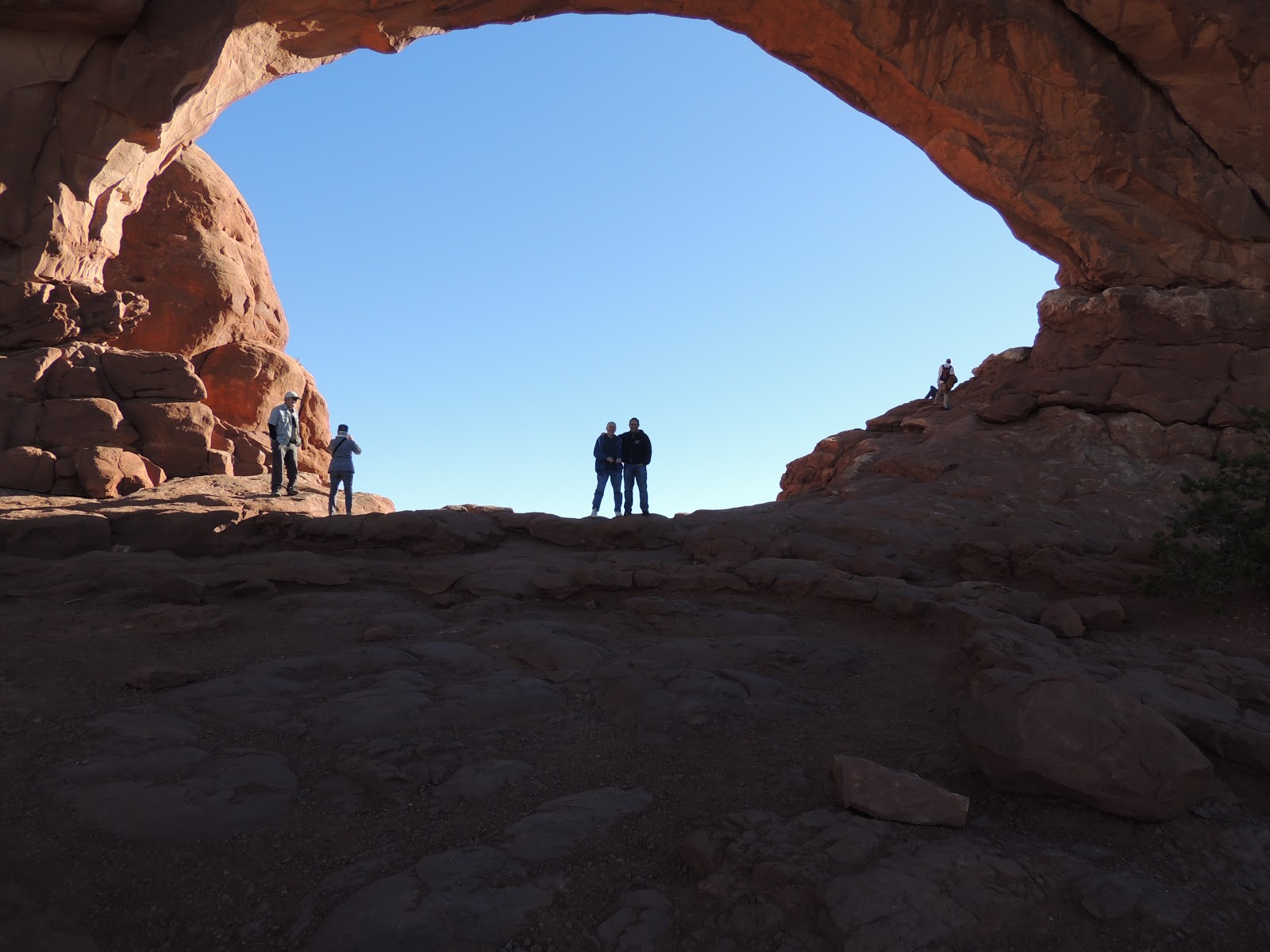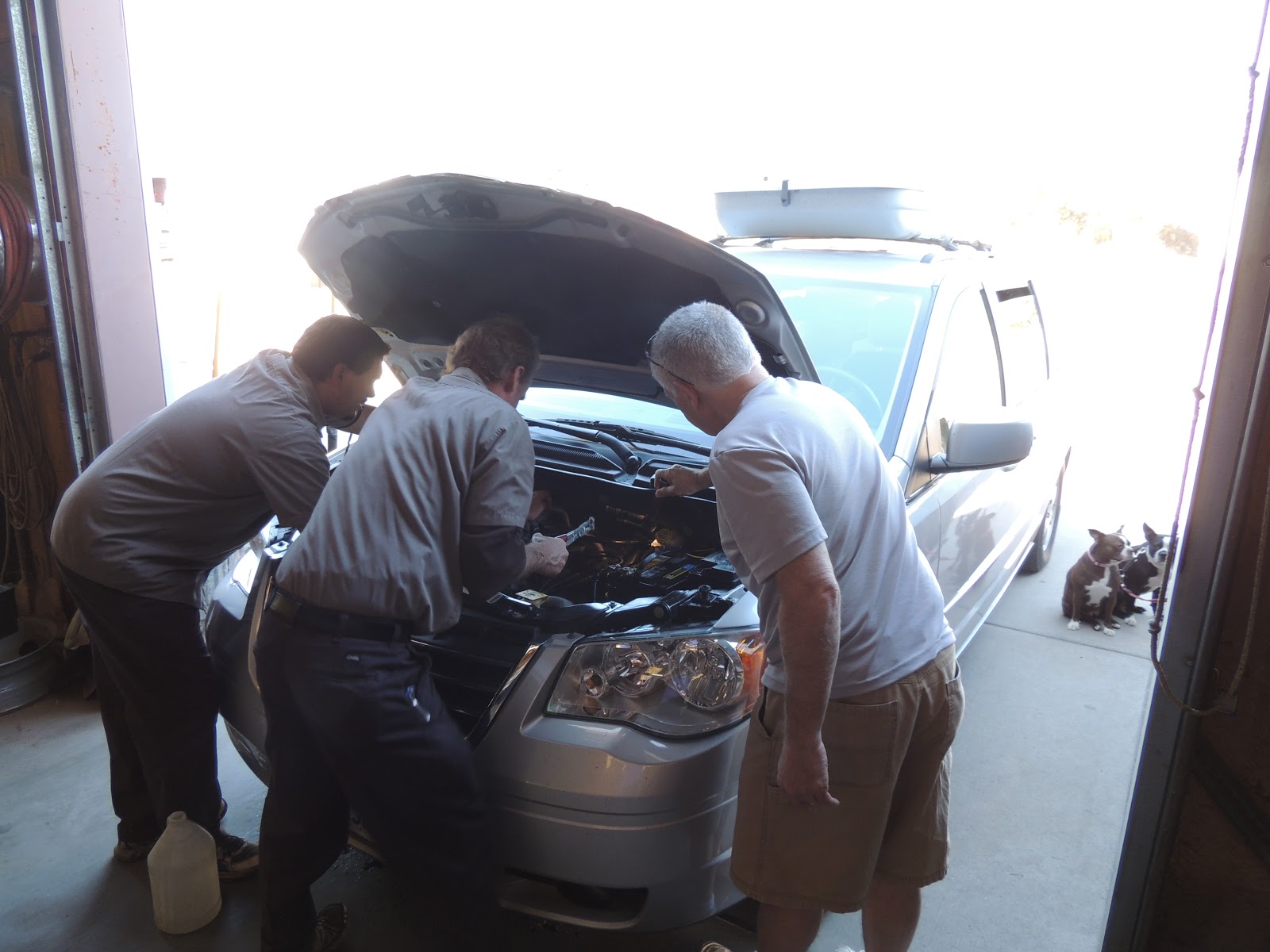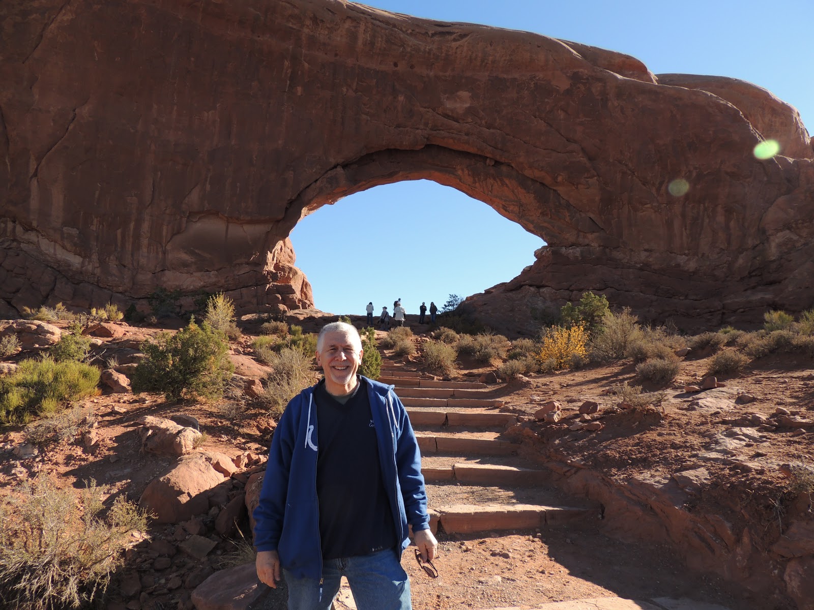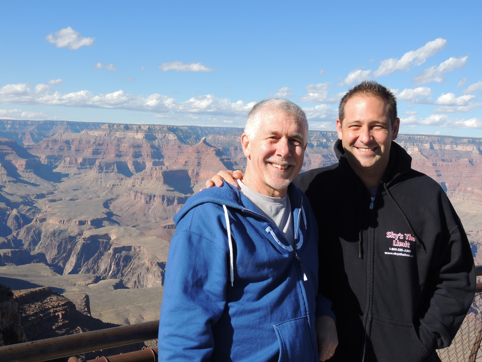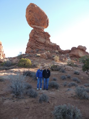 On Wednesday we left my Aunt Cindy’s house and drove north in Arizona. We pulled off to go to Sedona and when we got to the stop sign smoke was coming out from the hood, so we pulled over. Radiator fluid had sprayed everywhere. We put water in the radiator and drove 5 miles to a service station and were met by just the kind of guy we needed to see at that moment – a true mechanic who said, “Pull it right in.” A plastic connector had cracked and was spraying. It was a dealer part, but the guy was able to disconnect the rear heater hose and do a temporary fix. We will call in the parts in Chicago and fix it ourselves permanently. It was a cheap fix and we were on the road with only an hour lost. Decided to bypass Sedona and get up to the Grand Canyon. We were just going to stay for an hour or so, but it was just too beautiful and we ended up staying through sunset. We then drove about 5 hours up to Moab, Utah for the night, arriving at midnight. Today we are going to Arches National Park then driving through the Rockies in Colorado and will spend the night in Estes Park. Having fun Father-Son time!