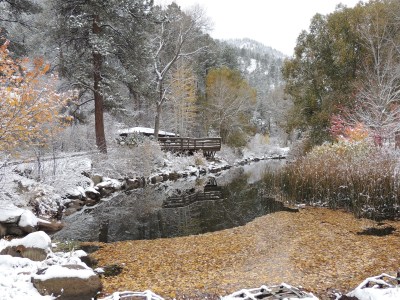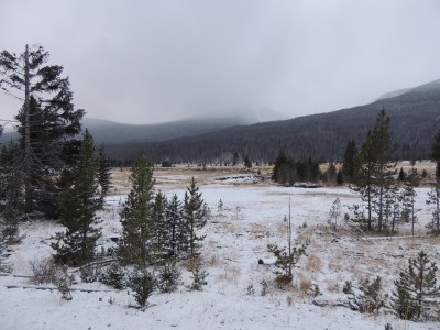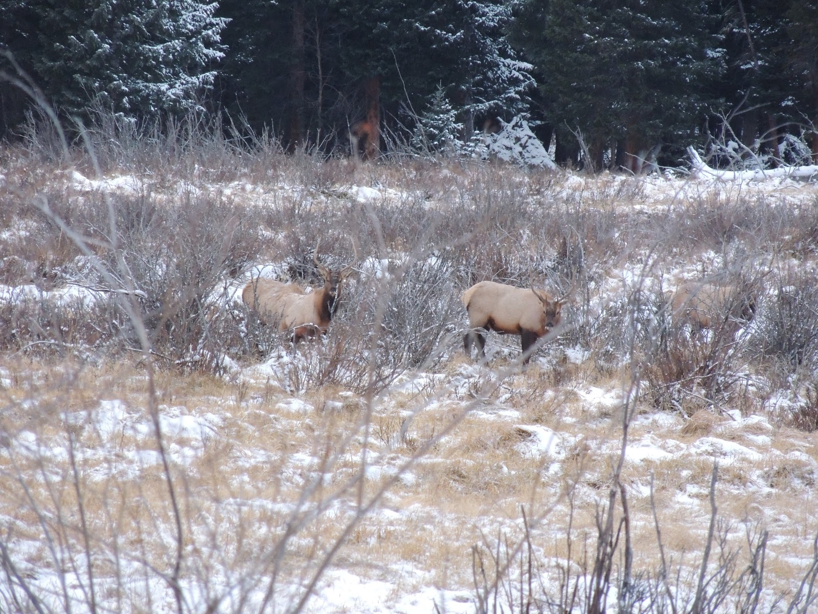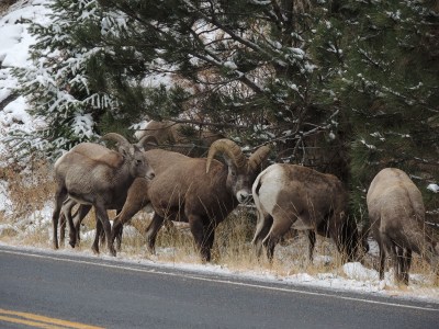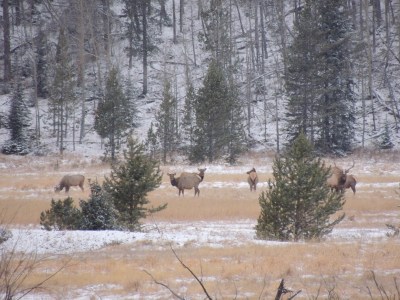 This morning we drove up to Arches National Park in Moab, Utah. Stunning! We then headed to the Rockies. En route we saw a bald eagle, a coyote, and a prairie dog. As we got closer to the mountains, it began snowing quite a bit and we couldn’t see the mountains. By the time we got to the park (just after 5pm) the weather seemed to be improving a bit, and though the visibility wasn’t the greatest, we were hopeful we would at least be able to see some wildlife. We entered the park through the west entrance, however, we were greeted by a sign that said, “Road closed 10 miles ahead.” We drove in the 10 miles and spotted 2 herd of elk, a coyote, and 3 bull elk locking their antlers a bit and posturing for dominance. We then turned around and went for dinner in Grand Lake. At 7pm we drove to a gas station and inquired about the alternate route to Estes Park. The girl said, “Go back 20 miles. Then you can turn left and go through [she named about 10 towns]. Then you’ll go through a big pass. Then you’ll catch 70.” Then she said (I am not kidding!), “But I wouldn’t go that way if I were you.” She said, “If I were you, I would turn right, go through 2 towns and catch 70.” It reminded me so much of this scene in the movie Funny Farm:
