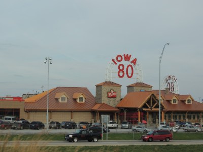 This morning we ate breakfast and visited with Barry and Lori. After saying our goodbyes Dad and I went to pay our respects to Lori’s late husband Jim Frew who was my dad’s best friend. Jim and his son Jimmy died tragically serving the Lord on a missions trip in 1995. We visited the baseball fields that were named in Jim’s honor by his church and also his grave site. I remember Jim well, but I so enjoyed hearing Dad talk about his best friend. (More to come on this in a future post.) We then spent the day driving to Chicago, IL. We saw literally a couple hundred hawks along the highways. Other than that, the highlight of the trip had to be stopping at Iowa 80: The World’s Largest Truck Stop. Every time I’m there I get chills down my spine. I am awe-struck. Speechless. Tears begin to well up in my eyes. So moving. lol!