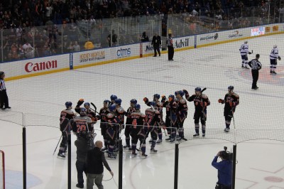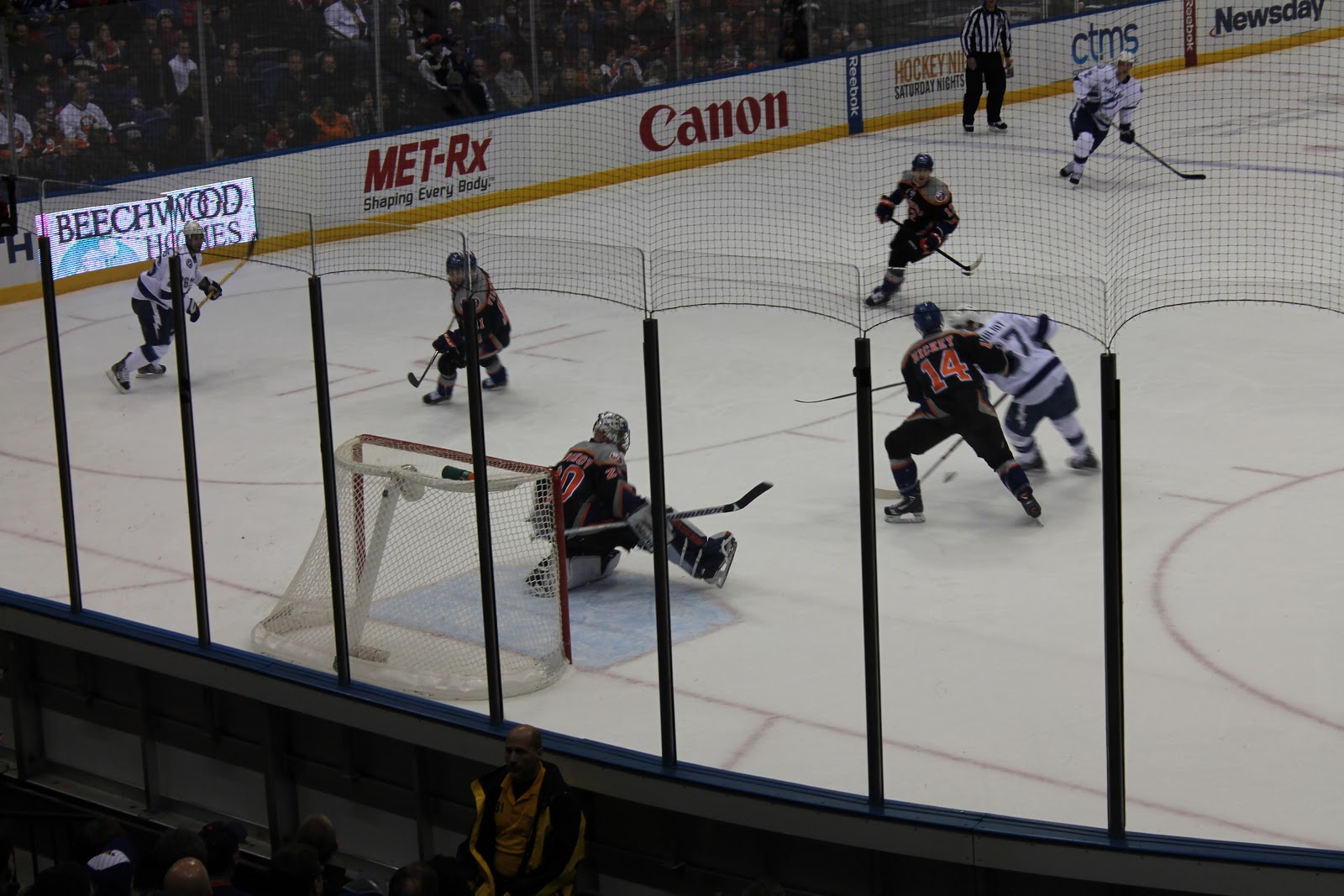 Saturday evening we were blessed by a dear friend with a bunch of tickets to the New York Islanders hockey game. We were able to have several of our best friends from Smithtown, as well as two of our friends from London, join us for a very fun evening. The Islanders won. Unfortunately my high school classmate Marty Reasoner did not suit up for the game (heard he might have been out sick). It would have been neat to see him play. Next time.