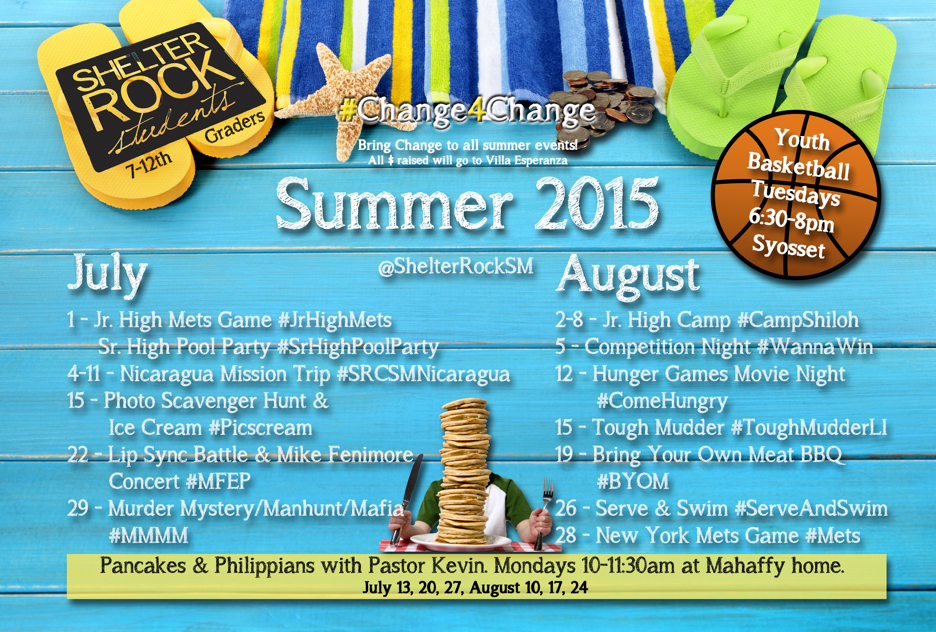 I also offer a Bible study in a casual environment for student who would like to intentionally deepen their faith during the summer. I do it late enough in the morning so that students don’t feel like they can’t sleep in (not to mention, because I am not a morning person) – usually at 10am. Last summer I had students join me at a diner and we did a study on the Holy Spirit. This summer I am inviting students to join me at my house for Philippians and Pancakes.