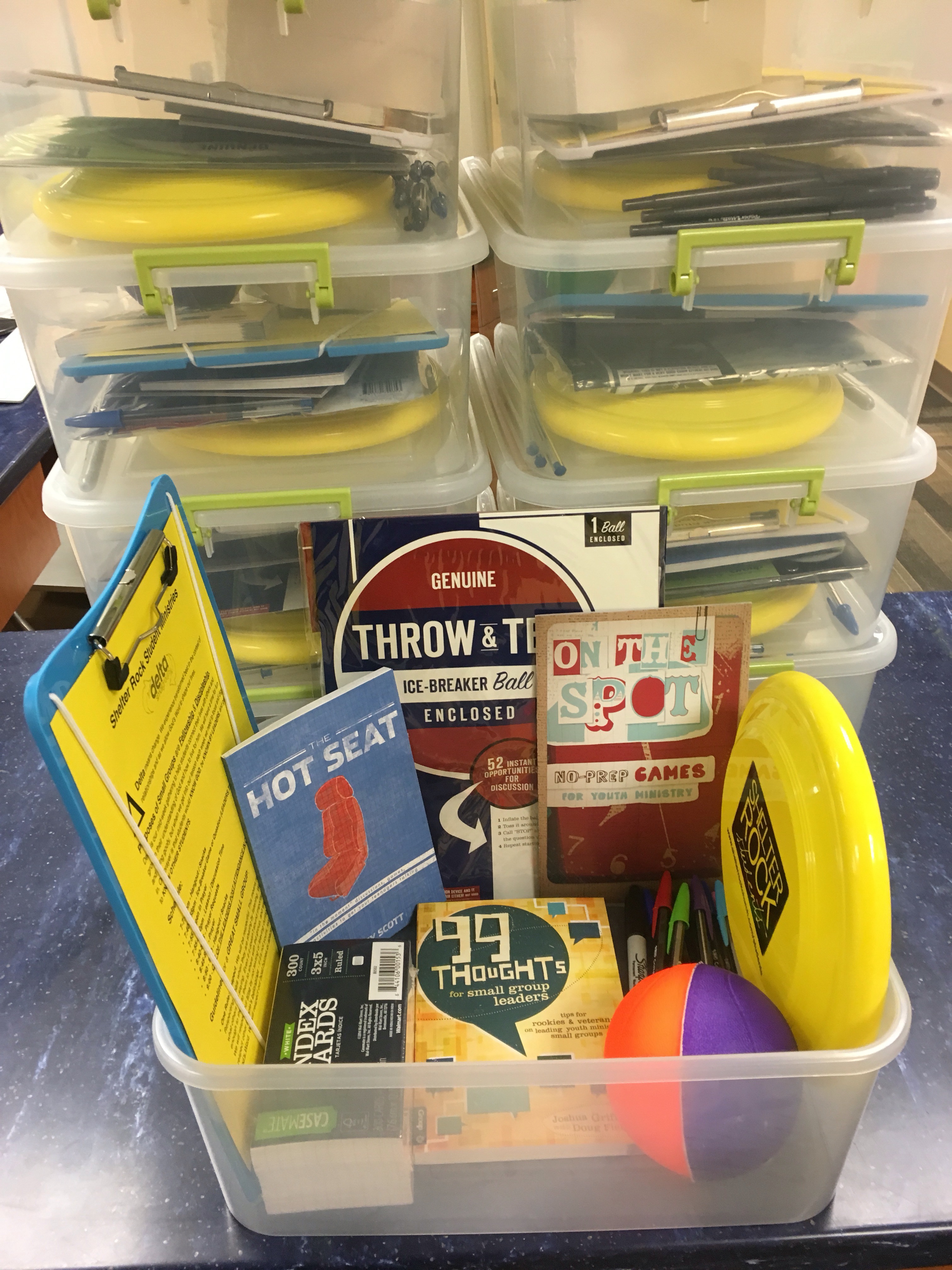 Small groups are the most important thing we do in our ministry to students. Today I put together kits for each of our groups to help them maximize engagement and eqip our leaders to be even more effective. You can put all kinds of things into a box like this. Our leaders already have thri curriculum content, so here’s what we put in ours: